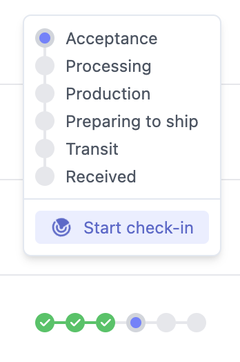 <summary>By hovering over a status timeline on the Line Items page and selecting "<strong>Start check-in</strong>"</summary>